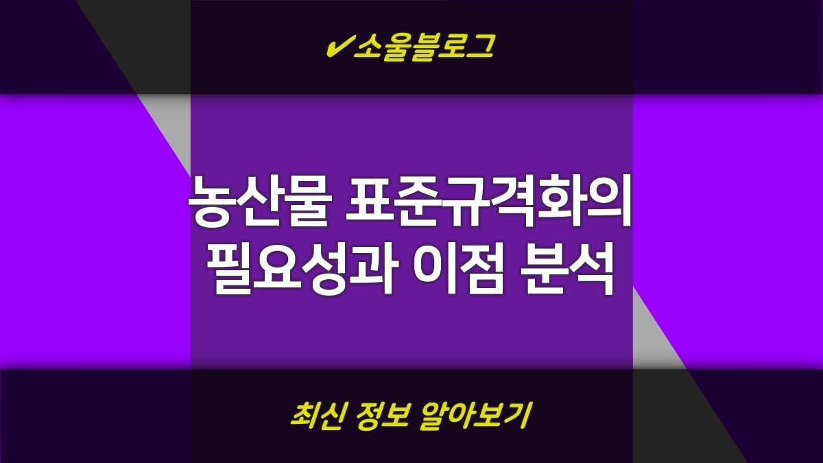 농산물 표준규격화는 농업의 미래와 소비자의 안전을 위한 중요한 과정입니다. 이를 통해 농산물의 질을 높이고 소비자 신뢰를 구축할 수 있습니다. 앞으로 더욱 발전된 농산물 표준규격화를 위해 지속적인 정책과 교육이 필요하며, 모든 이해관계자가 함께 협력해야 할 때입니다.