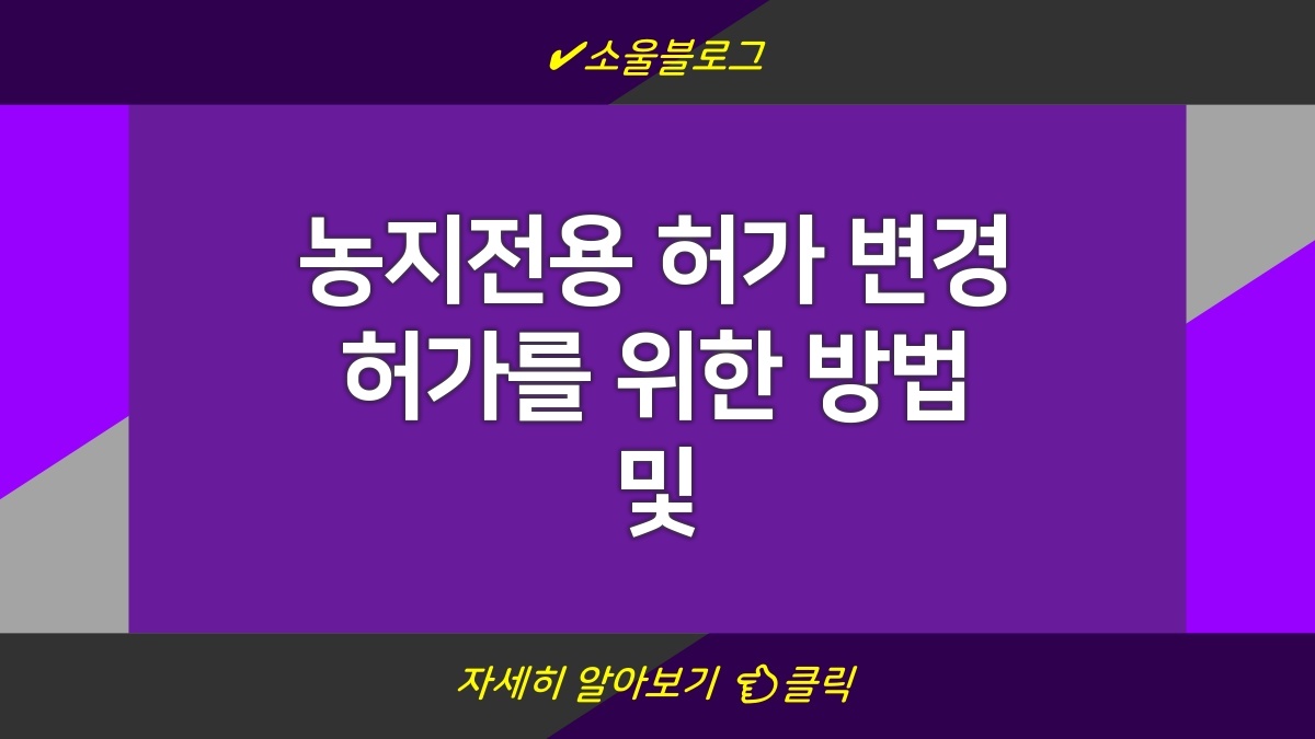 농지 전용 허가는 농지를 다른 용도로 변경할 수 있는 중요한 절차야. 변경 허가를 받는 과정은 복잡할 수 있지만, 정확한 절차를 따르면 문제 없이 진행할 수 있어. 기본적으로 농지 전용 허가는 해당 지역 관할청에 신청하면 되고, 이 과정에서 필요한 서류를 잘 준비해야 해. 특히, 필요한 서류가 빠지지 않도록 체크 리스트를 만들면 도움이 될 거야. 농지 전용 변경 허가 절차는 지역마다 다를 수 있으니 미리 확인하는 게 중요해.