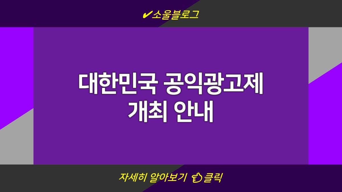 대한민국에서 공익광고제가 열린다고 한다. 이번 행사에서는 다양한 카테고리에서 공익적 메시지를 담은 광고를 접할 수 있다. 광고 작품은 개인이나 단체 누구나 참여 가능하다. 더불어 공익에 대한 관심을 높일 수 있는 기회로 삼아도 좋을 것 같다. 이렇게 중요한 행사인 만큼 많은 사람들이 참여했으면 좋겠다.