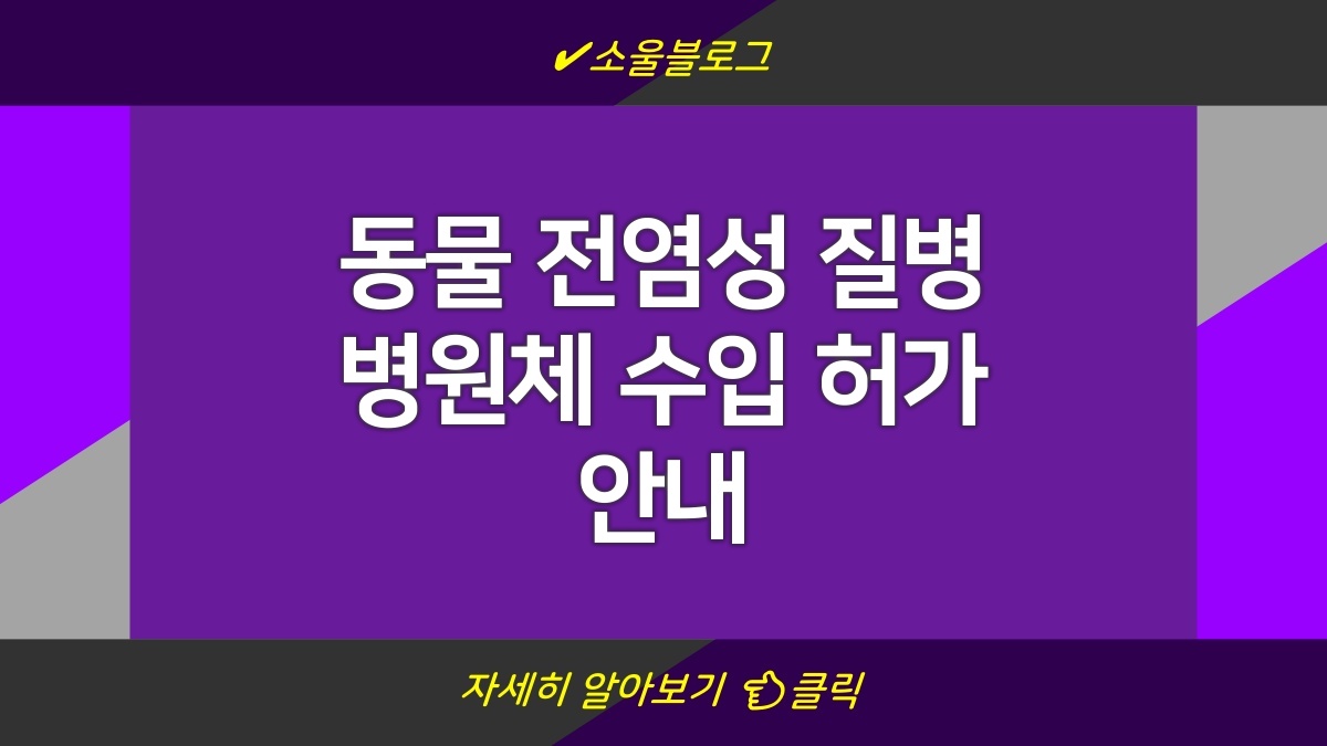 동물의 전염성 질병 관련 병원체 수입 허가는 절차가 복잡할 수 있지만, 필요한 서류와 요구사항을 빠짐없이 준비하면 가능함. 공적인 절차를 따르는 것이 중요하고, 조금의 실수라도 놓치면 큰 문제가 생길 수 있으니 조심해야 해. 이 정보를 바탕으로 잘 준비해서 안전하게 진행하길 바람.