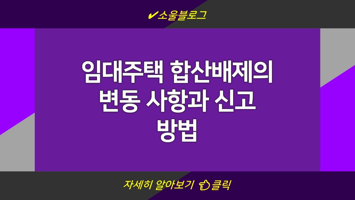 변경된 임대주택 합산배제와 신고 방법에 대한 정보는 많이 변동이 있었음. 이를 통해 많은 사람들이 긍정적인 혜택을 받기를 바람. 앞으로의 상황에 맞춰 언제든지 추가 정보가 필요할 수 있으니 상황 체크를 잘 해보는 게 중요함. 필요한 정보는 쉽게 찾아볼 수 있도록 해두고 나만의 주거 계획을 세우길 바람.