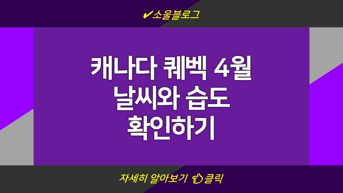 캐나다 퀘벡의 4월 날씨는 변덕이 심해. 초봄의 시기라 기온과 습도가 자주 변하니까 준비가 필요해. 평균 기온은 낮에는 쌀쌀하고 밤에는 더 추울 수 있어. 날씨를 실시간으로 확인하는 게 중요하니까 이 링크에서 체크하길 추천해. 실시간으로 습도도 확인할 수 있어. 날씨에 따라 옷을 준비해야 하니까 옷차림도 미리 고려해야 해.