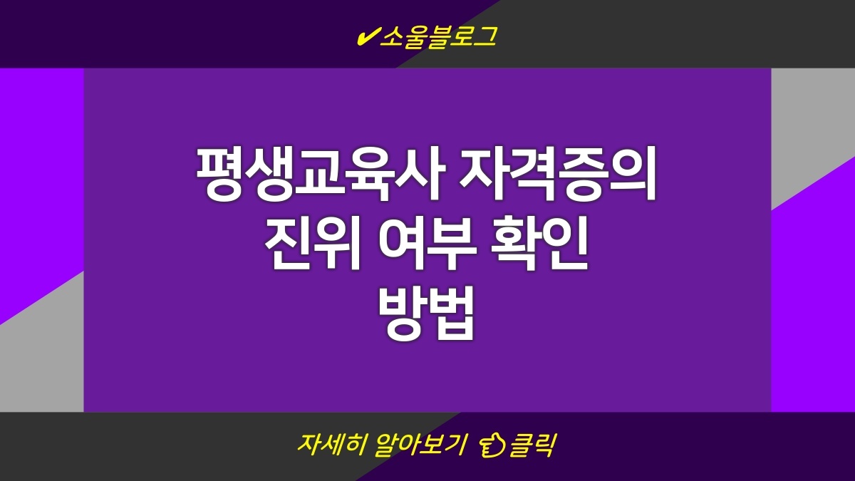 평생교육사 자격증을 취득하고 싶은 사람들이 많아. 하지만 이 자격증의 진위 여부에 대해서는 확인이 필요할 때가 많지. 자격증의 진위 여부를 확인하려면 공식 웹사이트를 통해 확인하면 돼. 대한민국 정부의 공식 포털 사이트에서 제공하는 정보가 가장 정확하니까 꼭 참고해보길 바래. 여기서는 평생교육사 자격증의 진위 여부를 어떻게 확인할 수 있는지에 대해 정리해볼게.
