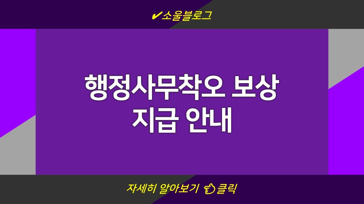 행정사무착오 보상 지급은 공공기관의 실수나 착오로 인해 피해를 본 경우에 대해 보상해주는 제도임. 이 제도를 통해 주민들은 행정사무에 의한 피해를 최소화할 수 있어. 보상을 받으려면 일정한 절차를 따라야 하고, 필요한 서류를 준비해야 하니 주의가 필요함. 정확한 정보 확인은 언제나 중요하니, 관련 링크를 참고하면 좋겠음. ㅋㅋ